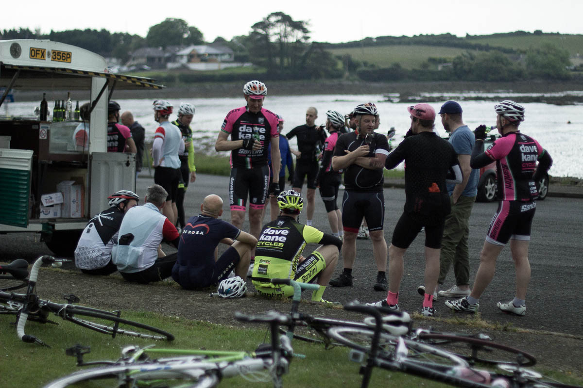 We have joined together with our good friends Mark and Paul Kane from Dave Kane Cycles and Sam and Tony of il Pirata/ Coppi Restaurants to share our friendship and love of cycling. Last night we had our inaugural run which was a short social affair starting and finishing at il Pirata and including a refreshment stop at ‘White Rocks’ along the shore of Strangford Lough with the Coppi Truck in attendance.